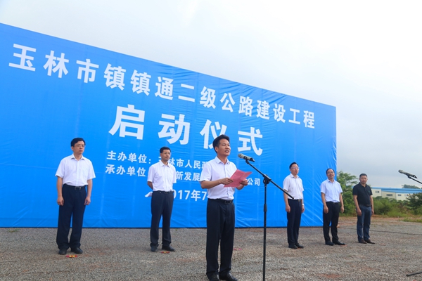 7月18日上午,玉林市鎮鎮通二級公路建設工程項目啟動儀式在玉林市興業縣隆重舉行。玉林市副市長李振品宣布項目正式啟動。新發展集團黨委書記、董事長朱堅和,新發展集團黨委委員,副總經理李德智,路橋集團黨委書記、董事長馮春萌等領導出席了啟動儀式。
