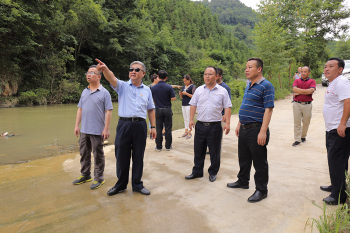 據(jù)了解,中停村有一段通村道路每逢雨季、下大雨,洪水漫過(guò)路面,中斷交通,群眾出行、學(xué)生上學(xué)受阻。調(diào)研組一行來(lái)到現(xiàn)場(chǎng)實(shí)地查看,商討解決辦法。